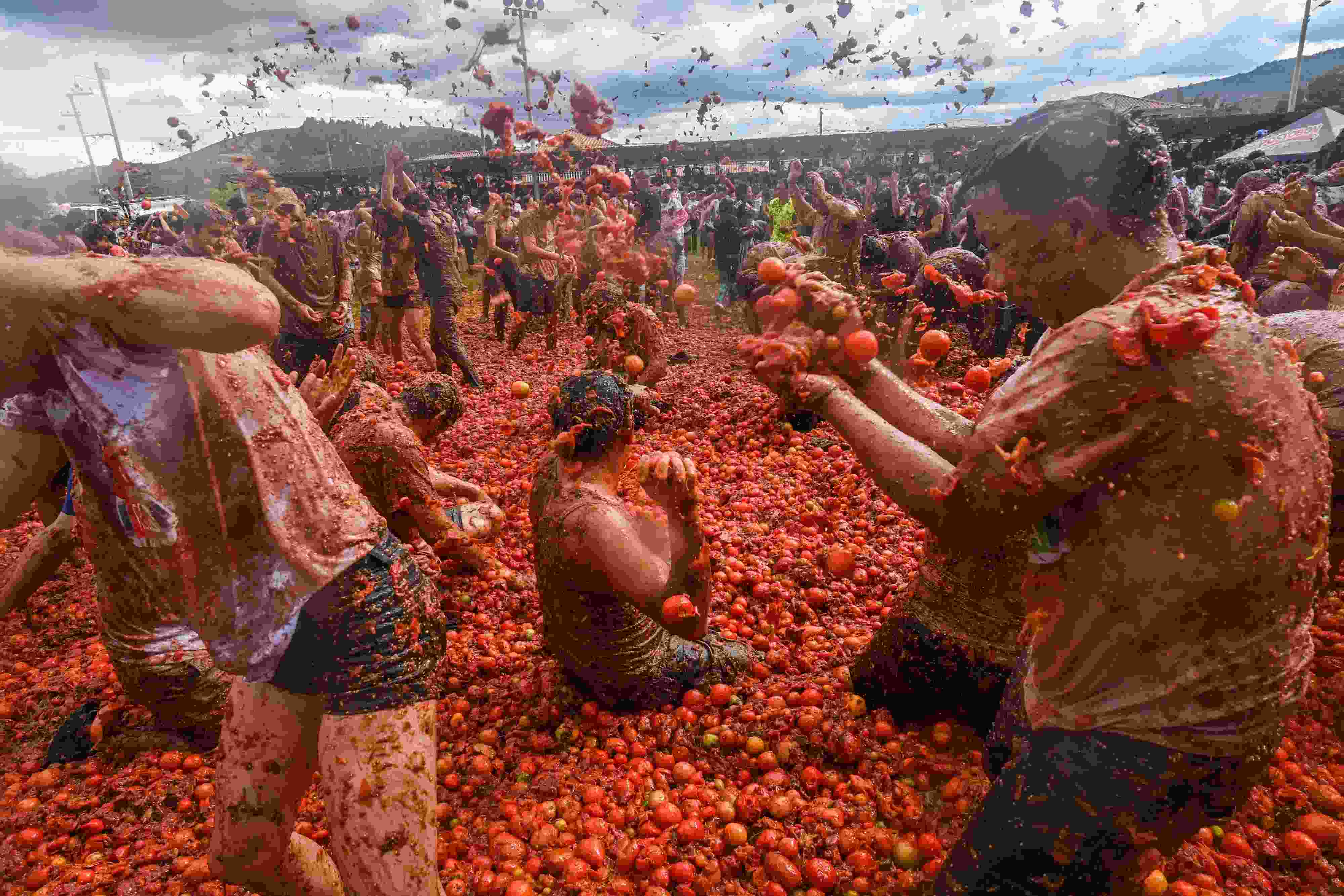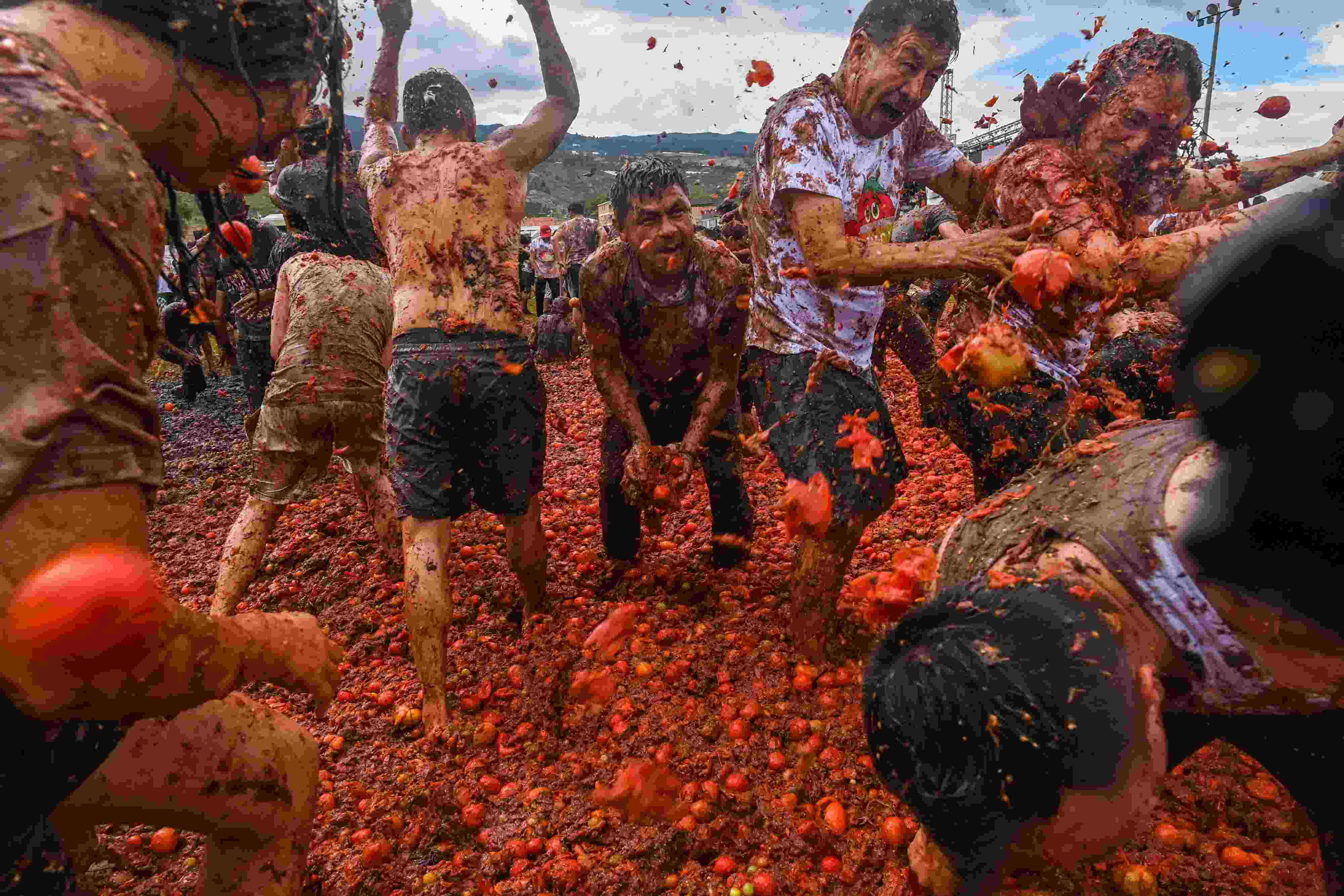 哥倫比亞民眾參加“西紅柿大戰(zhàn)”