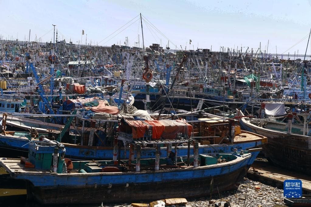 6月13日,在巴基斯坦信德省特達(dá)地區(qū),漁船停泊在漁港內(nèi)。