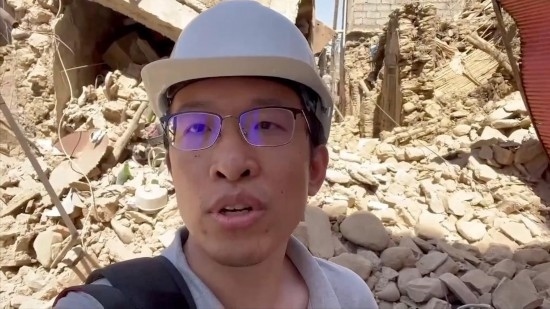 新華社記者霍晶奔赴震中附近的艾米茲米茲村,進(jìn)行現(xiàn)場(chǎng)報(bào)道。