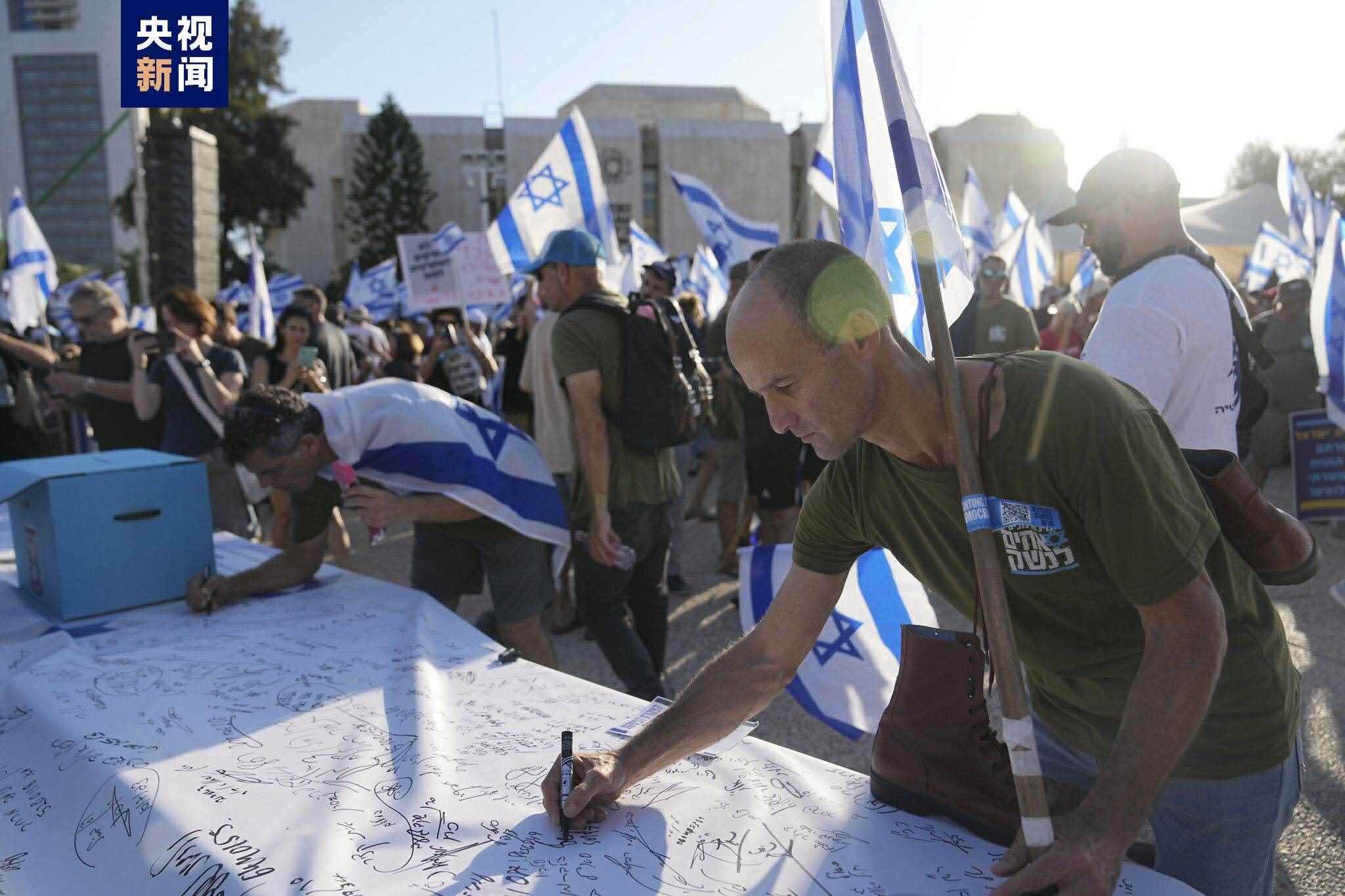 △今年7月,以色列預(yù)備役士兵簽署聲明拒絕參與訓(xùn)練,抗議司法改革。
