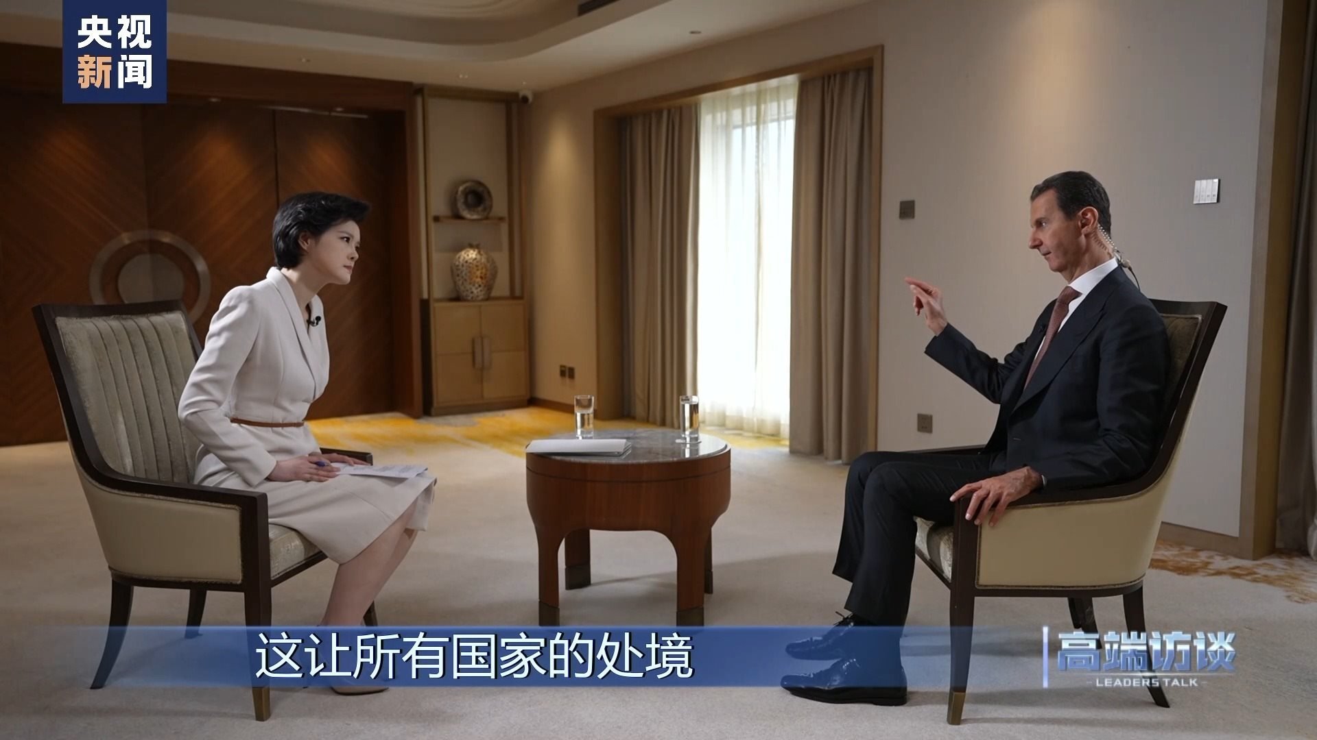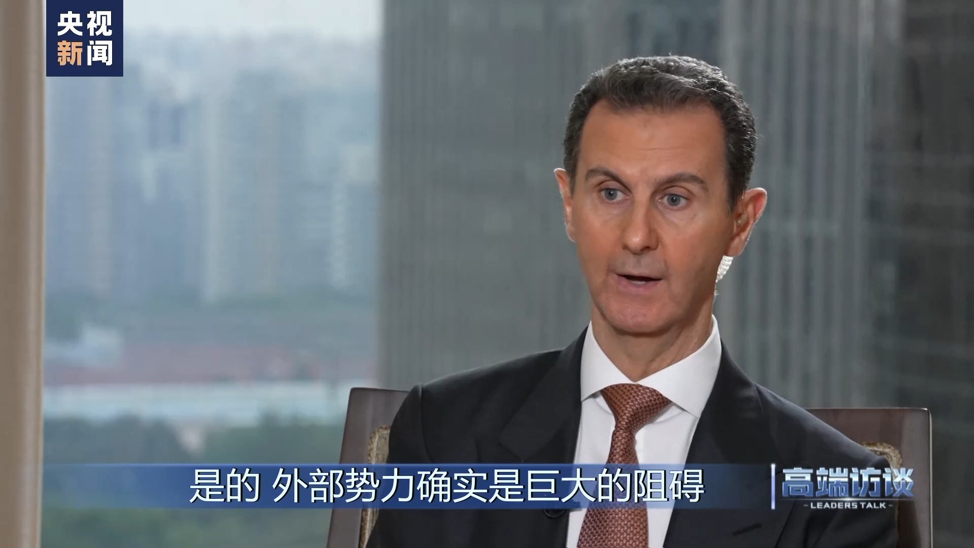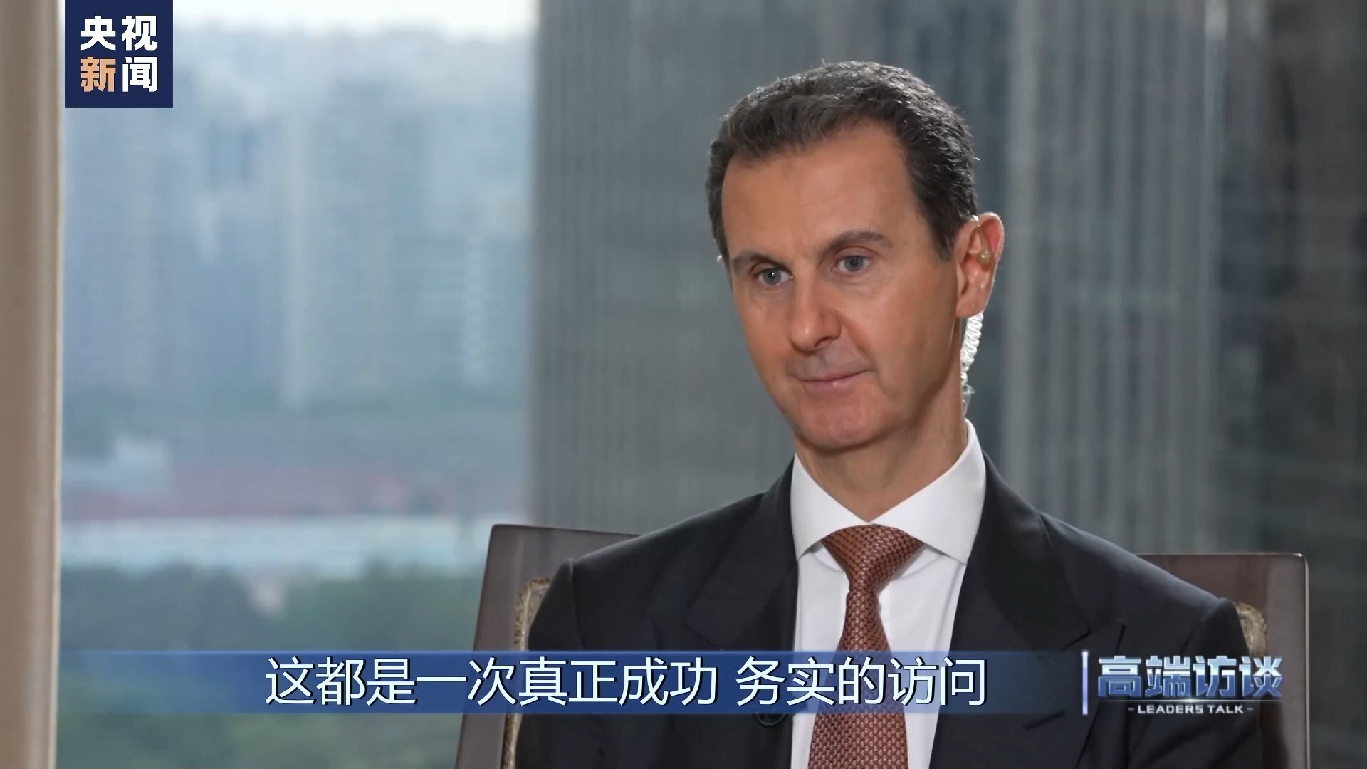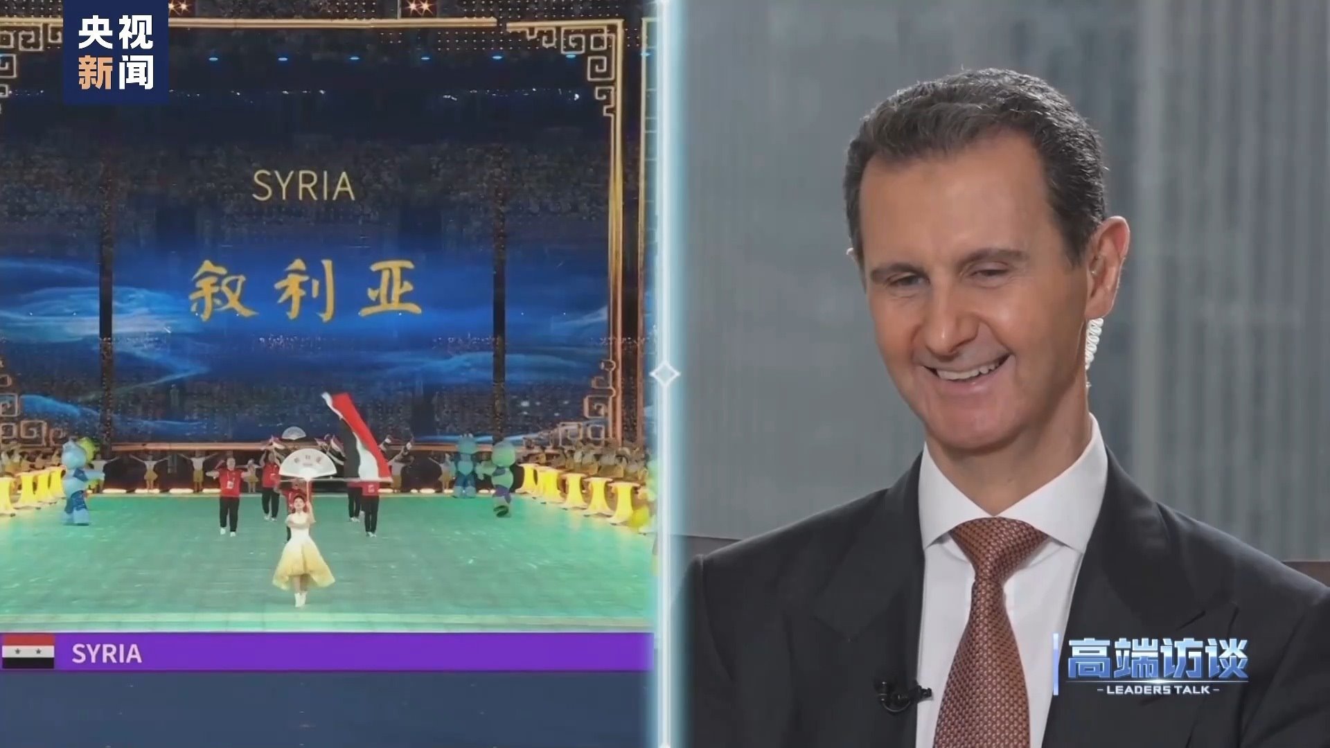 巴沙爾:感謝你給我機(jī)會(huì),通過你們頻道、你們節(jié)目向中國(guó)人民說這些話。我想向中國(guó)人民表示祝賀,祝賀你們過去幾十年取得的成就。事實(shí)證明,中國(guó)人民是偉大的人民。我不是嘴上說說,而是事實(shí)的確如此。我們祝愿中國(guó)實(shí)現(xiàn)國(guó)家愿景,在國(guó)際上,中國(guó)的愿景也是當(dāng)今世界大多數(shù)國(guó)家的愿景。謝謝你的采訪!