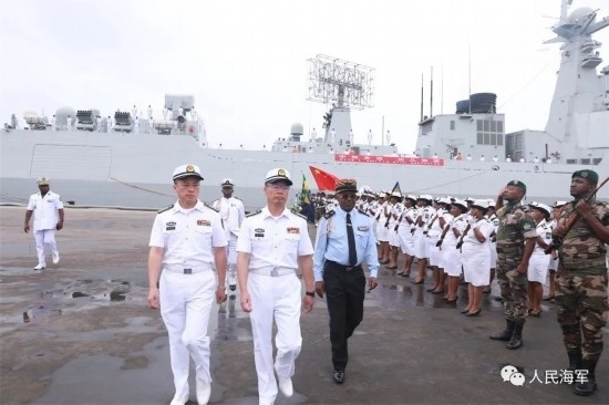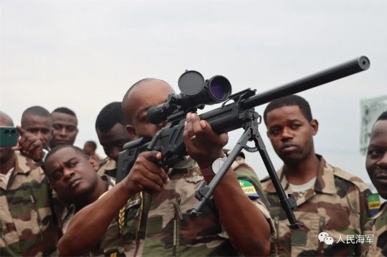 編隊艦艇靠泊后,編隊指揮員和李津津大使同加蓬主要領(lǐng)導互致問候,并在加蓬海軍儀仗隊隊長的陪同下檢閱了加蓬海軍儀仗隊。