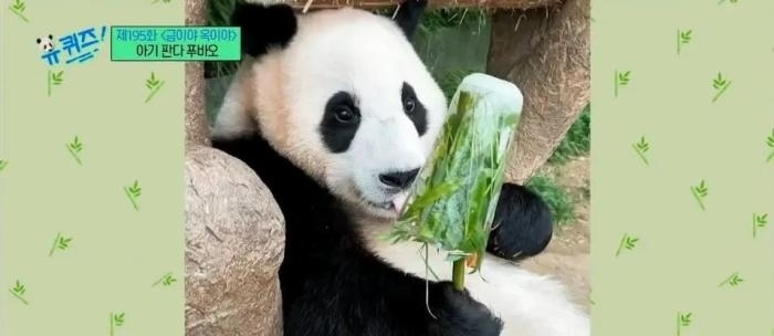“福寶”吃“竹子冰淇淋”。(圖片來源:韓國tvN電視臺)