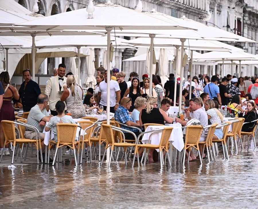 當(dāng)?shù)貢r(shí)間2023年8月6日,意大利威尼斯,城內(nèi)部分地區(qū)積水嚴(yán)重。