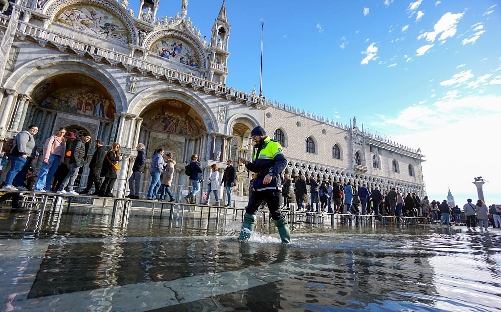 意大利威尼斯近日水位上漲,城內(nèi)部分地區(qū)積水嚴(yán)重,游客走在水中游覽觀光。聯(lián)合國教科文組織認(rèn)為,威尼斯每年接待約2800萬游客,當(dāng)?shù)夭粩噙M(jìn)行城市建設(shè),導(dǎo)致過度開發(fā),市中心一些高大建筑影響城市整體形象。此外,全球變暖導(dǎo)致海平面上升,四面環(huán)水的威尼斯非常容易遭受洪水侵襲,但威尼斯當(dāng)局沒有充足、詳細(xì)的應(yīng)對方案。威尼斯正面臨“不可逆轉(zhuǎn)”的破壞風(fēng)險(xiǎn),意大利有關(guān)部門“缺乏戰(zhàn)略眼光”,無法解決這座水城目前面臨的種種問題。