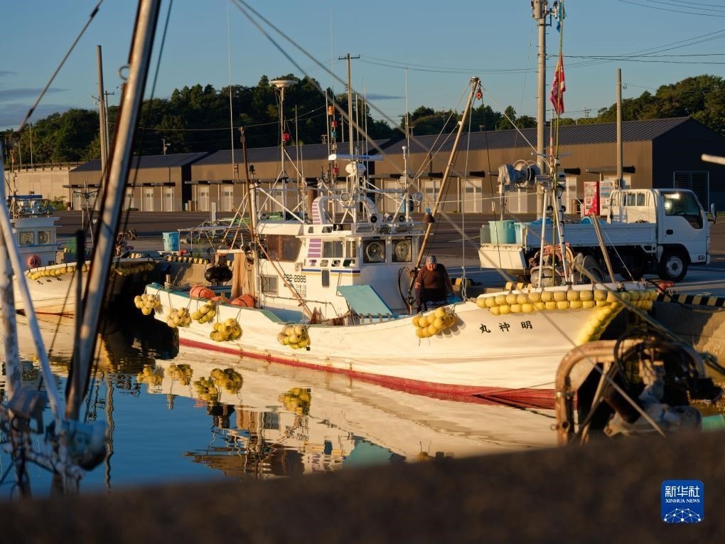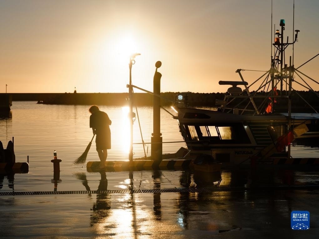 8月23日,捕魚歸來的漁民在日本福島縣新地町的漁港打掃。新華社記者 張笑宇 攝