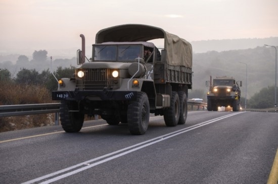 10月8日,以色列軍用車輛在北部靠近黎巴嫩邊境區(qū)域的道路上行駛。新華社發(fā)(阿亞爾·馬戈林攝/基尼圖片社)