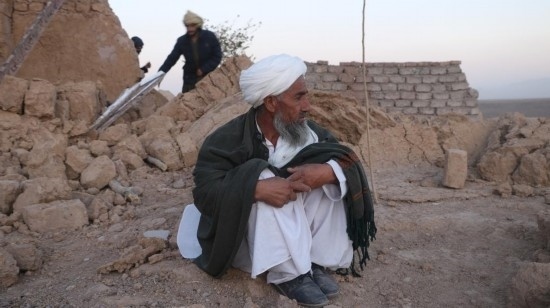 10月7日,在阿富汗赫拉特省,一名老人坐在自家坍塌的房屋前。新華社發(fā)(馬沙勒攝)