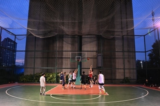 2022年9月20日,杭州市民在位于高鐵橋下的錢江世紀(jì)城體育公園打籃球。新華社記者 黃宗治 攝