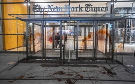 另據(jù)《以色列時(shí)報(bào)》報(bào)道,還有示威者在《紐約時(shí)報(bào)》總部大樓外集會(huì)并在大樓入口處潑上紅色顏料,這些示威者認(rèn)為《紐約時(shí)報(bào)》關(guān)于巴以新一輪沖突的報(bào)道偏袒以色列。