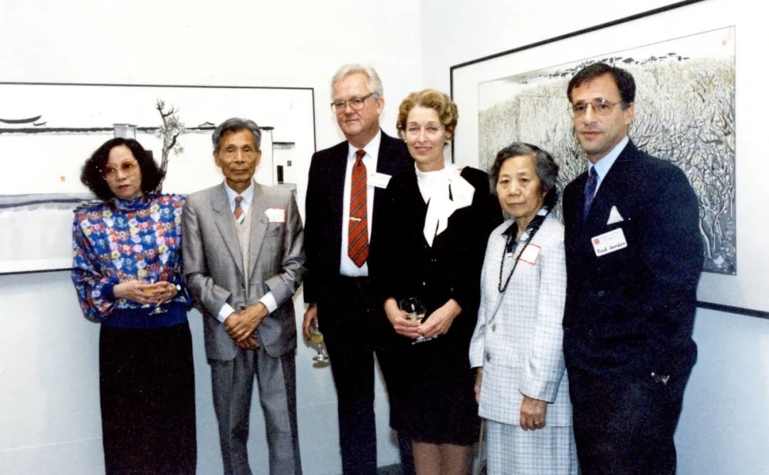 高居翰(左三)與吳冠中(左二)在畫(huà)展上合影。高居翰之女莎拉提供