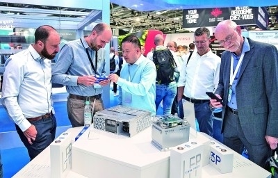 9月5日,人們?cè)诘聡侥岷趪H車展上與中國展商洽談。新華社發(fā)