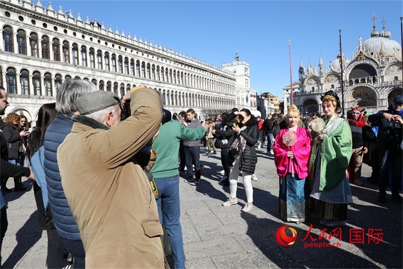隊伍到達圣馬可廣場后,活動正式開始。出席活動的中國駐米蘭總領(lǐng)事劉侃表示,活動為威尼斯狂歡節(jié)增添了中國文化元素,是不同文明交流互鑒的生動體現(xiàn)。威尼斯副市長瑪爾表示,感謝華人為當?shù)厣鐣l(fā)展所作貢獻,表示將進一步發(fā)展與蘇州的友好關(guān)系。