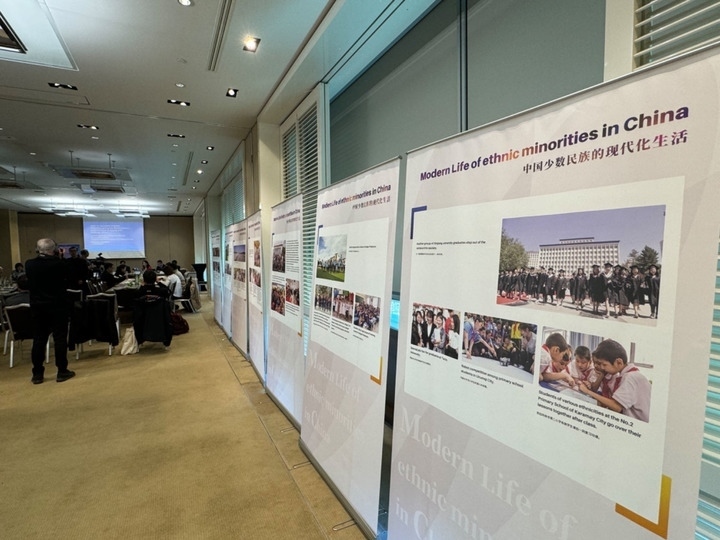 ?3月14日,由中國人權(quán)研究會(huì)主辦的“現(xiàn)代化發(fā)展中的少數(shù)民族受教育權(quán)——以中國西藏和新疆為例”主題邊會(huì)在瑞士日內(nèi)瓦舉行。圖為會(huì)議現(xiàn)場舉辦的“中國少數(shù)民族的現(xiàn)代化生活”圖片展。新華社記者石松攝