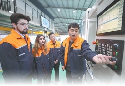 沈陽工學(xué)院與武漢華中數(shù)控股份有限公司共同建設(shè)“一帶一路”訂單班,聯(lián)合培養(yǎng)行業(yè)急需的“專業(yè)+俄語”高素質(zhì)應(yīng)用型人才,訂單班學(xué)生畢業(yè)后將回國從事數(shù)控技術(shù)相關(guān)工作,實現(xiàn)高質(zhì)量就業(yè)。圖為中國同學(xué)和留學(xué)生分享操作經(jīng)驗。新華社記者 ?楊 ?青攝