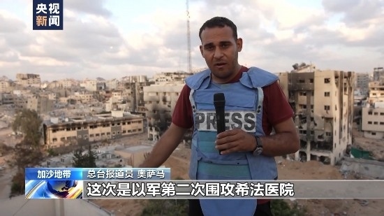 總臺報道員 奧薩馬:我身后就是加沙城的希法醫(yī)院,此前以色列軍隊襲擊了這里,目前該醫(yī)院已經(jīng)停止服務(wù)。以軍此前的襲擊造成大量民眾身亡,還有一些人被捕,醫(yī)院設(shè)施被毀并發(fā)生火災(zāi),之后加沙地帶衛(wèi)生部門宣布,該醫(yī)院完全停止服務(wù)。我們注意到,這里現(xiàn)在沒有醫(yī)務(wù)人員,沒有手術(shù)室,也無法提供任何類型的醫(yī)療服務(wù)。