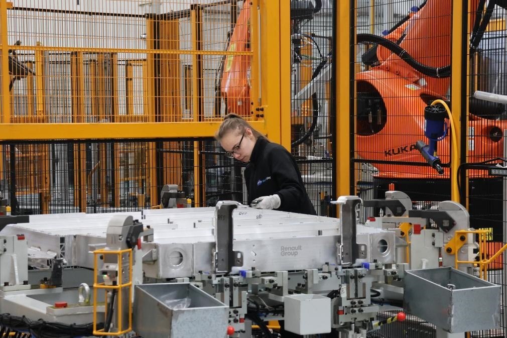 ?2月23日,在法國(guó)呂茨,中國(guó)敏實(shí)集團(tuán)與法國(guó)雷諾集團(tuán)成立的合資公司的員工在電池盒產(chǎn)線上工作。新華社記者張百慧攝