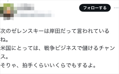 還有人說道:“有人說下一個(gè)澤連斯基是岸田。對(duì)美國來說,戰(zhàn)爭(zhēng)是賺錢的時(shí)機(jī),掌聲還是會(huì)給你的?!?/p>