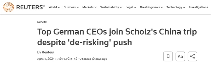 路透社分析稱,這份高管名單,凸顯了中國作為德國最大貿易伙伴的“重要份量”。