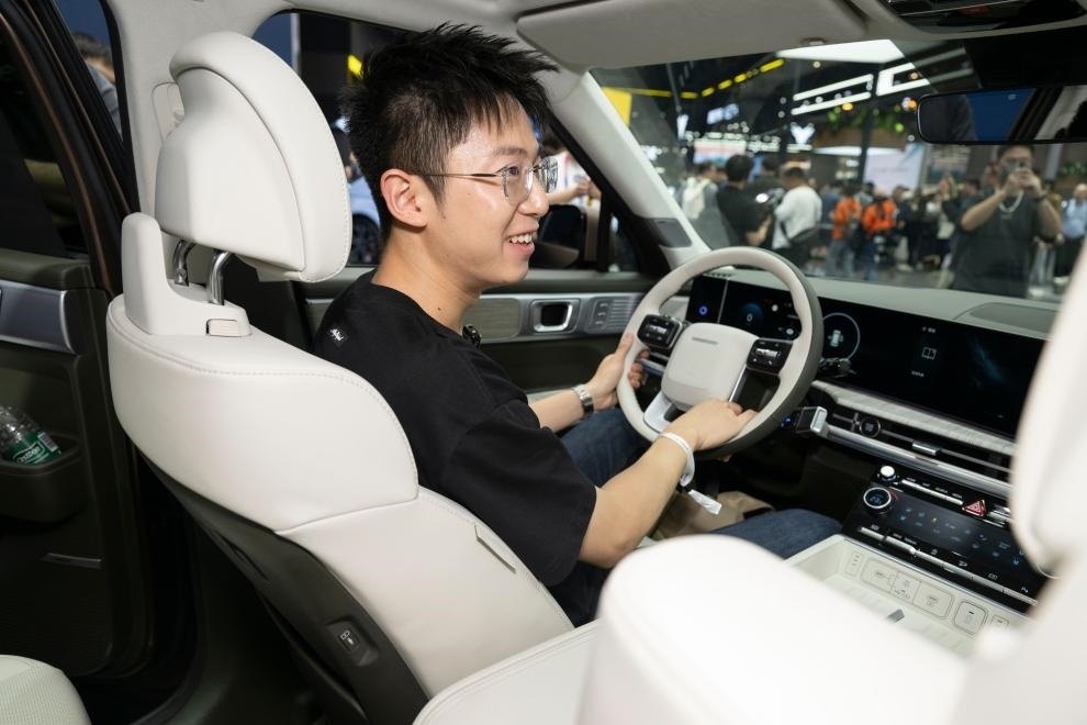?4月25日,在北京中國國際展覽中心順義館舉行的2024北京車展上,觀眾觀看北京現(xiàn)代全新勝達。新華社記者才揚攝