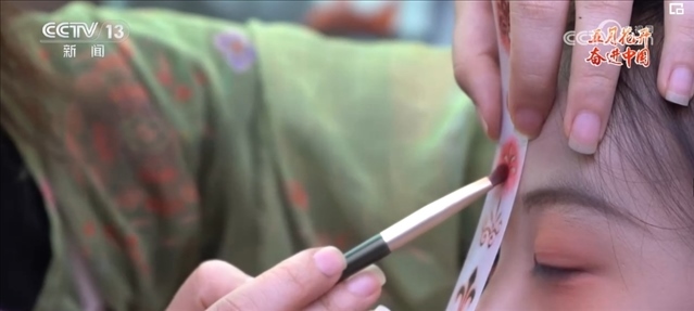 花鈿是古代女性在額頭部位點綴的一種花飾?,F(xiàn)在的胡芯銀,不僅會根據(jù)顧客的年齡、臉型和服裝的樣式來搭配不同風格的花鈿,還會給小姐姐們做一些傳統(tǒng)文化的講解。胡芯銀說,要想做得更好,就要多看多學。