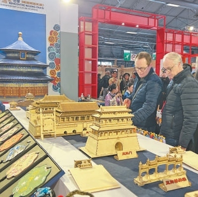 5月1日,法國(guó)巴黎國(guó)際博覽會(huì),人們?cè)凇坝鲨b中國(guó)”中華文化主題展上參觀。本報(bào)記者 王新萍攝
