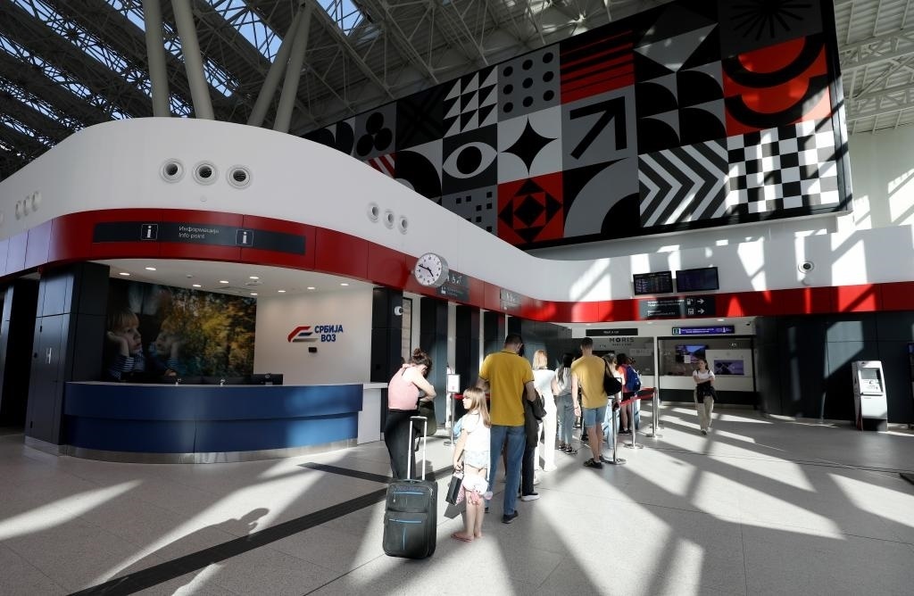 ?4月29日,在塞爾維亞貝爾格萊德中央火車站,人們在排隊(duì)購買車票。新華社記者李穎攝