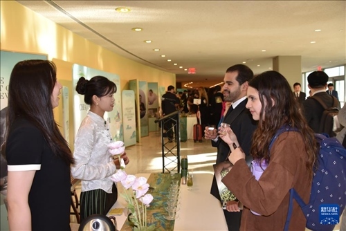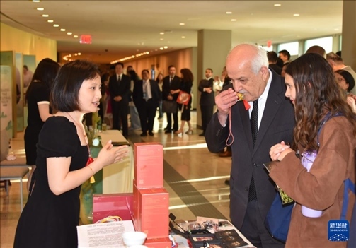 5月21日,在位于紐約的聯(lián)合國(guó)總部,人們參加“茶和天下”國(guó)際茶日展示和慶?;顒?dòng)。新華社記者 王建剛 攝