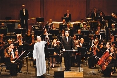 2005年,果敢在巴黎議會(huì)宮同巴黎歌劇院交響樂隊(duì)合作演出。頭頂是聚光燈,身后是150人組成的交響樂隊(duì),二胡的兩根弦拉響,身穿白色長(zhǎng)袍、剃著光頭的他一下被人們記住。