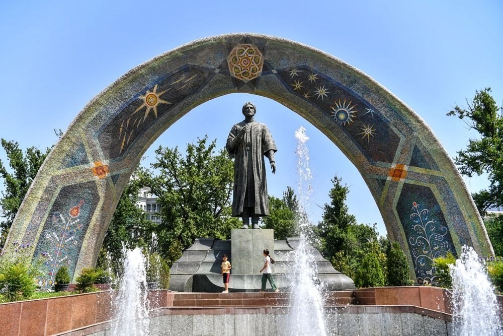 ↑位于杜尚別的索莫尼紀(jì)念碑。 新華社記者 周荻瀟 攝