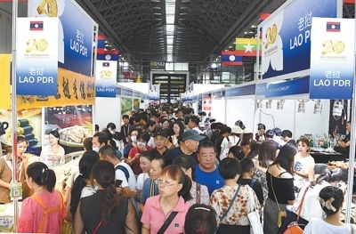 2023年9月,第二十屆中國(guó)—東盟博覽會(huì)公眾開放日期間,觀眾參觀東博會(huì)老撾商品館。新華社記者 周 華攝