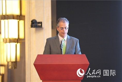 希臘駐華大使埃夫耶尼奧斯·卡爾佩里斯在影片放映前致辭。人民網(wǎng) 殷韜攝