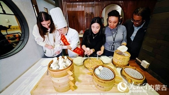 外媒記者體驗燒麥制作。人民網記者 張雪冬攝