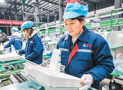 日前,在安徽省馬鞍山市當涂經(jīng)開區(qū)一家電子科技公司,工人在趕制首批出口科威特的智能小家電產(chǎn)品。