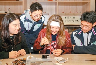 在隨后的手工環(huán)節(jié),來自美國佛羅里達州賽普萊斯灣高中的伊麗莎白·埃倫維·阿桑森體驗了中藥香囊制作,向小伙伴們展示了自己的成果?!爸兴幭隳业南銡夂芤巳耍曳浅O矚g。制作過程本身就充滿了文化魅力。”她說。