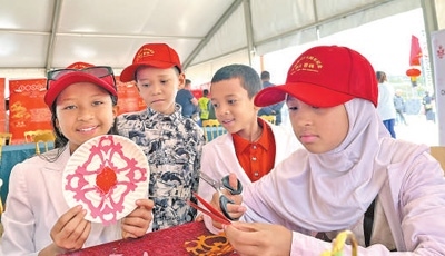 在亞的斯亞貝巴大學(xué)孔子學(xué)院,當(dāng)?shù)匦∨笥洋w驗中國剪紙藝術(shù)。