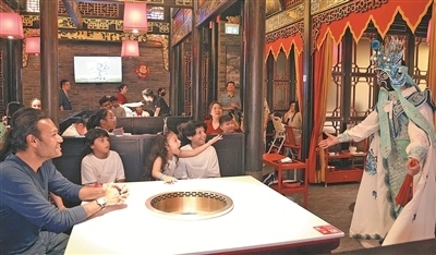 潘國(guó)余說(shuō),迪拜小龍坎火鍋店的位置在華人聚居區(qū),但現(xiàn)在40%的客人來(lái)自世界各地。這說(shuō)明只要把握好品質(zhì),中國(guó)餐飲品牌“走出去”有著巨大空間?!拔覀儼l(fā)現(xiàn),很多國(guó)際客人來(lái)這里,一是因?yàn)槌曰疱伳茏约赫瓶乜谖杜c火候,有儀式感,二是能更多體驗(yàn)中國(guó)文化?!睘榇?,小龍坎火鍋店特意安排了川劇變臉、甩面秀、古箏彈奏等表演(見(jiàn)圖③,本報(bào)記者管克江攝),還提供傳統(tǒng)服飾供客人試穿、拍照?!盎疱伒甑难b修是古色古香的川西風(fēng)格,包廂名字也具有蜀地文化特征,如青梅煮酒、三顧茅廬、桃園結(jié)義等。每當(dāng)有外國(guó)朋友問(wèn)起包廂名的含義,我們都會(huì)仔細(xì)解釋其歷史典故,做好美食的同時(shí)講好中國(guó)故事?!?/p>