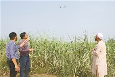 中國—巴基斯坦人工智能智慧農(nóng)業(yè)實驗室研發(fā)人員運用無人機定期巡檢畫面,通過人工智能分析,實時向農(nóng)戶反饋作物生長情況。