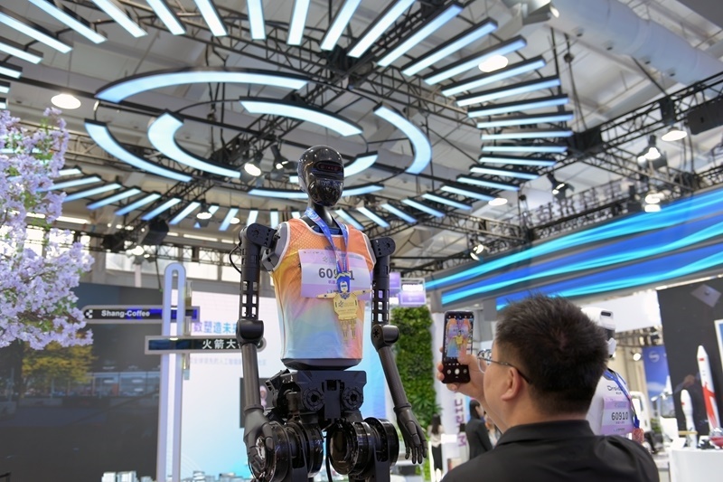 9月10日,參展者在服貿(mào)會展廳的北京經(jīng)濟技術開發(fā)區(qū)展位拍攝機器人。