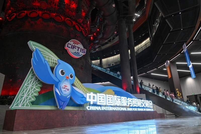 9月10日,觀眾從2025年中國國際服務貿(mào)易交易會標識前經(jīng)過。