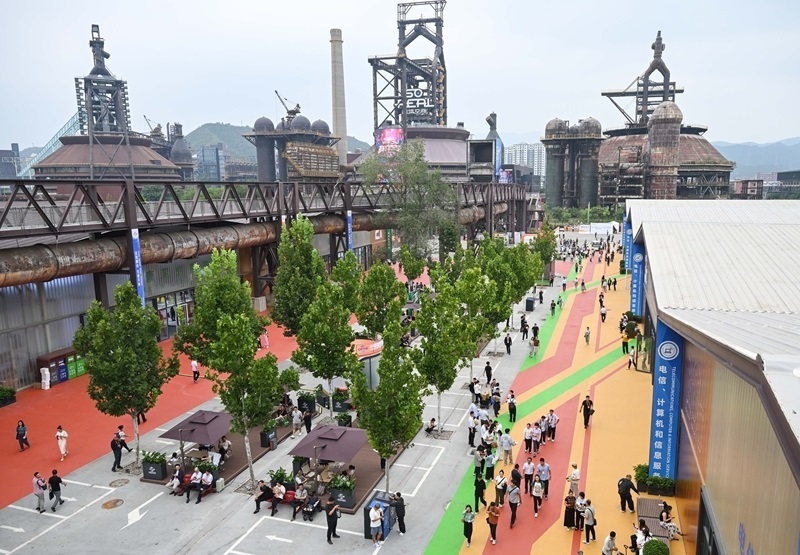 9月10日,在首鋼園四高爐,參會人員進出會議區(qū)。