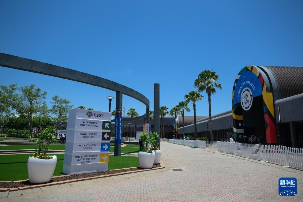 這是11月22日在南非約翰內(nèi)斯堡拍攝的二十國(guó)集團(tuán)領(lǐng)導(dǎo)人第二十次峰會(huì)會(huì)場(chǎng)外景。新華社記者 楊光 攝