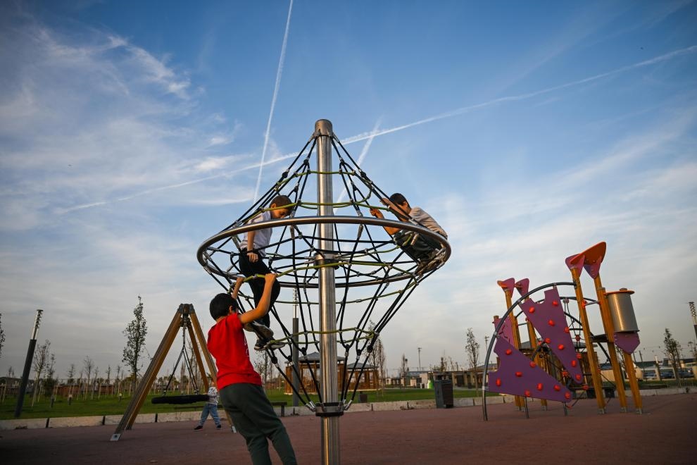 2025年11月21日,兒童在土耳其伊斯坦布爾阿塔圖爾克機場舊址玩耍。新華社記者 劉磊 攝