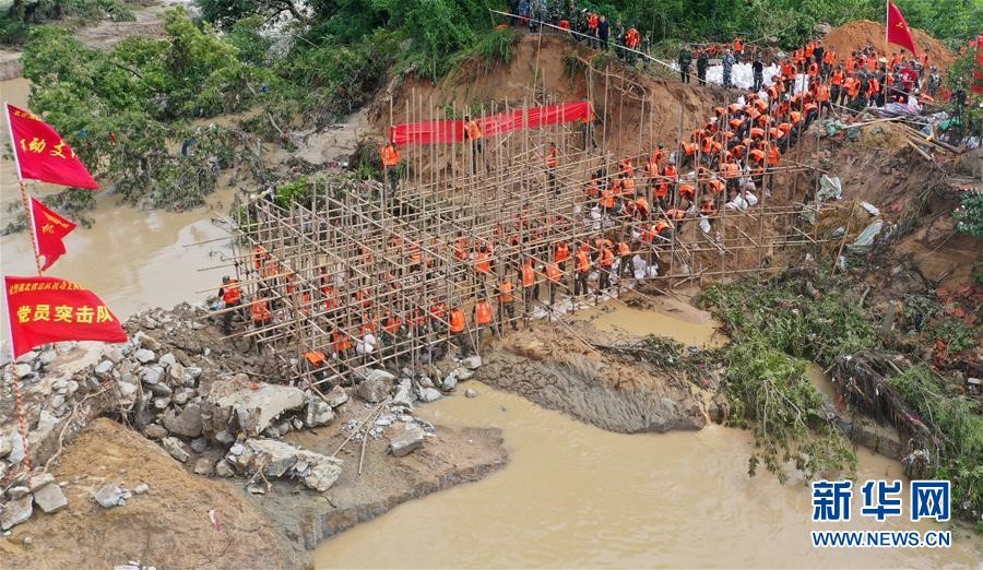在鄱陽(yáng)縣江家?guī)X村,一個(gè)排澇站突發(fā)穿孔險(xiǎn)情??鐓^(qū)支援的上饒市信州區(qū)人武部120名民兵及時(shí)趕到,采用裝填鐵絲網(wǎng)、投放沙石袋等方法進(jìn)行封堵,連續(xù)奮戰(zhàn)9個(gè)多小時(shí),成功排除險(xiǎn)情。