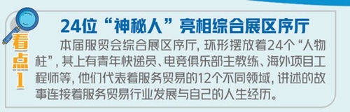 綜合展區(qū)包括序廳、公共衛(wèi)生防疫專區(qū)、國(guó)別和省區(qū)市專區(qū)及服務(wù)貿(mào)易十二大領(lǐng)域企業(yè)專區(qū)等。