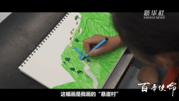 在四川大涼山,12歲的額其古伍畫(huà)下“懸崖村”之變。從藤梯、鋼梯到樓梯,人民對(duì)美好生活的向往,就是中國(guó)共產(chǎn)黨的奮斗目標(biāo)。