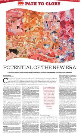 作為中國(guó)日?qǐng)?bào)外籍記者,穆迪一共發(fā)表了700多篇封面報(bào)道和評(píng)論,總計(jì)100多萬字。從2019年為《中國(guó)日?qǐng)?bào)》“慶祝新中國(guó)成立七十周年??弊珜戭}為《新時(shí)代,共未來》的封面文章,到今年建黨百年??系男侣劮治觥缎聲r(shí)代的潛力》,“新時(shí)代中國(guó)”是穆迪近年寫作的主題。