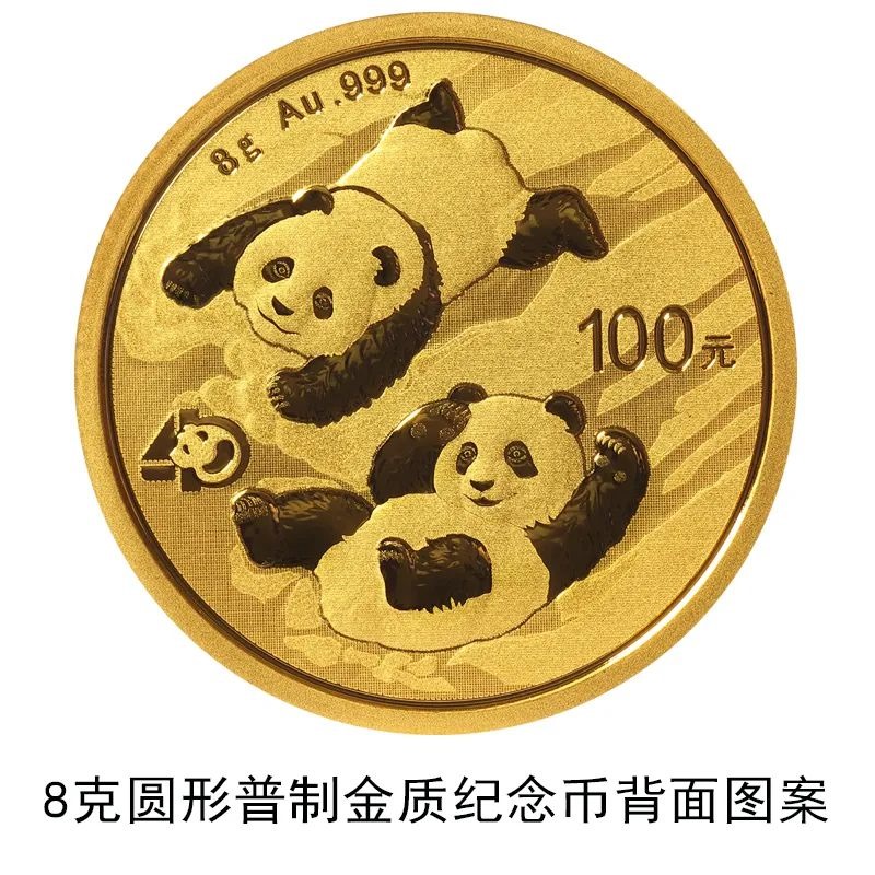 該套貴金屬紀(jì)念幣正面圖案均為北京天壇祈年殿,并刊國名、年號;背面圖案均為大熊貓滑雪嬉戲場景,輔以“熊貓金幣發(fā)行40周年標(biāo)識”元素,并刊面額、重量及成色。