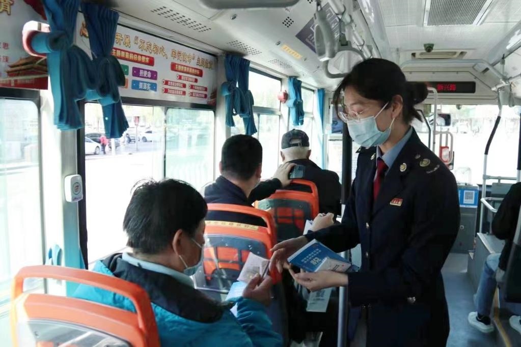 天津市稅務(wù)局第一稽查局組織業(yè)務(wù)骨干在公交車上進(jìn)行稅法宣傳。受訪者供圖