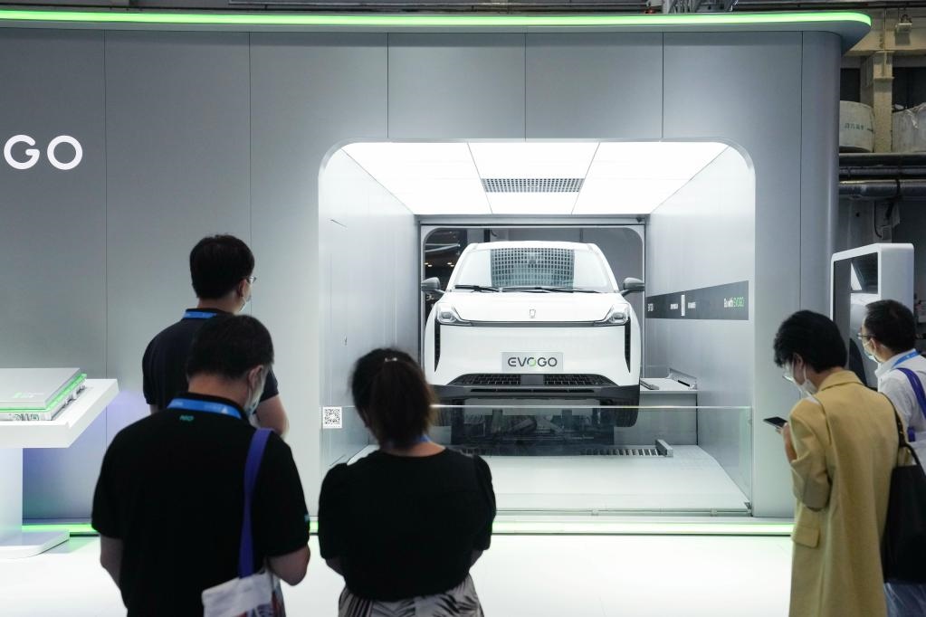 在電池制造企業(yè)寧德時代的展臺,一臺為新能源汽車更換電池的換電站正進行演示?!跋Mㄟ^最新研發(fā)的換電產品,讓電池成為共享資產,化解續(xù)航里程、補電便捷性和購置使用成本三大電動車用戶痛點?!睂幍聲r代相關負責人表示,未來換電模式將和充電模式互為補充,共同支撐消費者的補能需求。